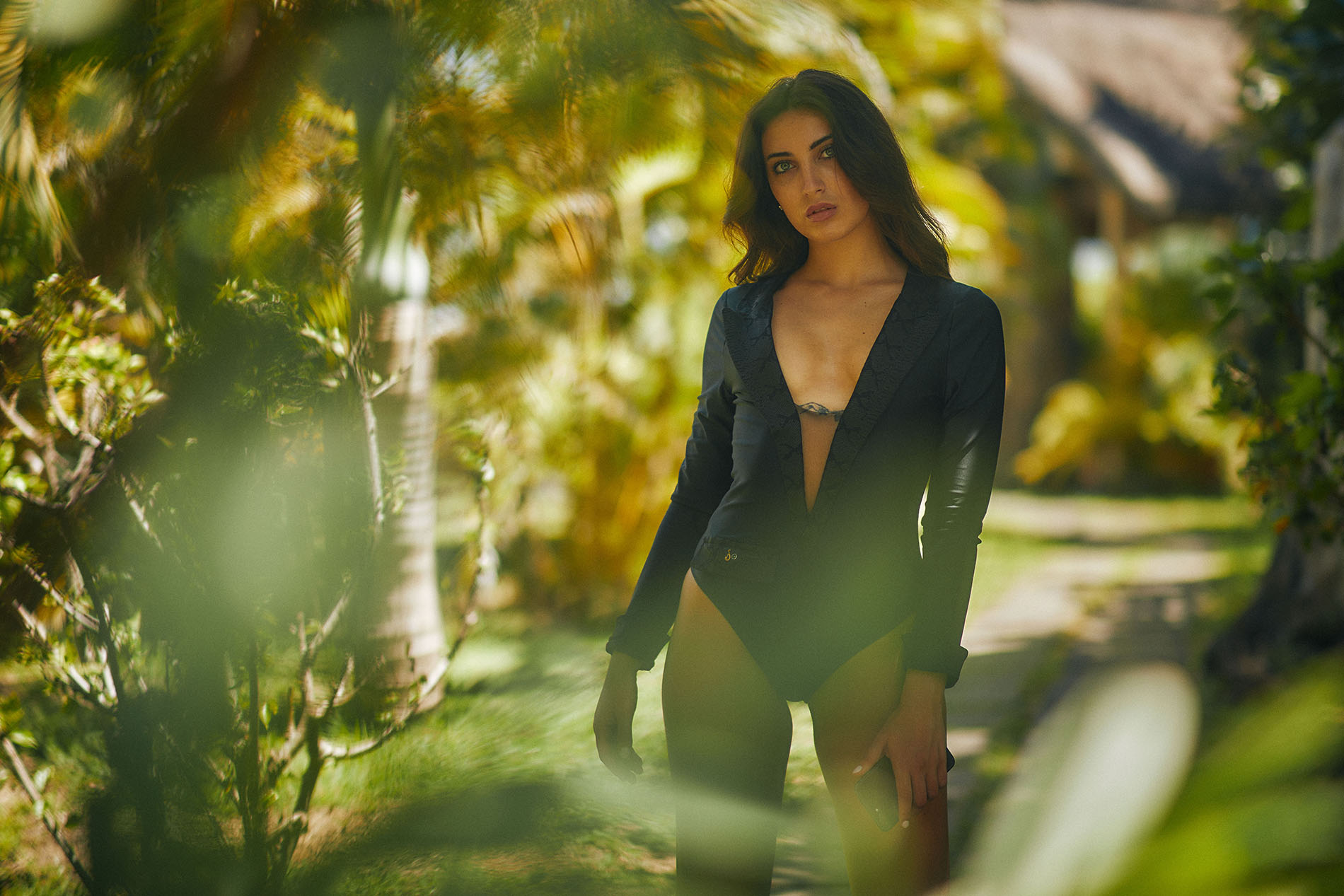 Push elegance to its maximum by wearing this swimsuit. The cut emphasizes your curves with subtlety. High-end touches are brought by the python effect on the collar and lapels as well as on the cuffs. The neckline will be your seduction asset. Easy to put on thanks to its long invisible zipper in the back. From the beach to the evening, it fits perfectly. Be chic, be unique.